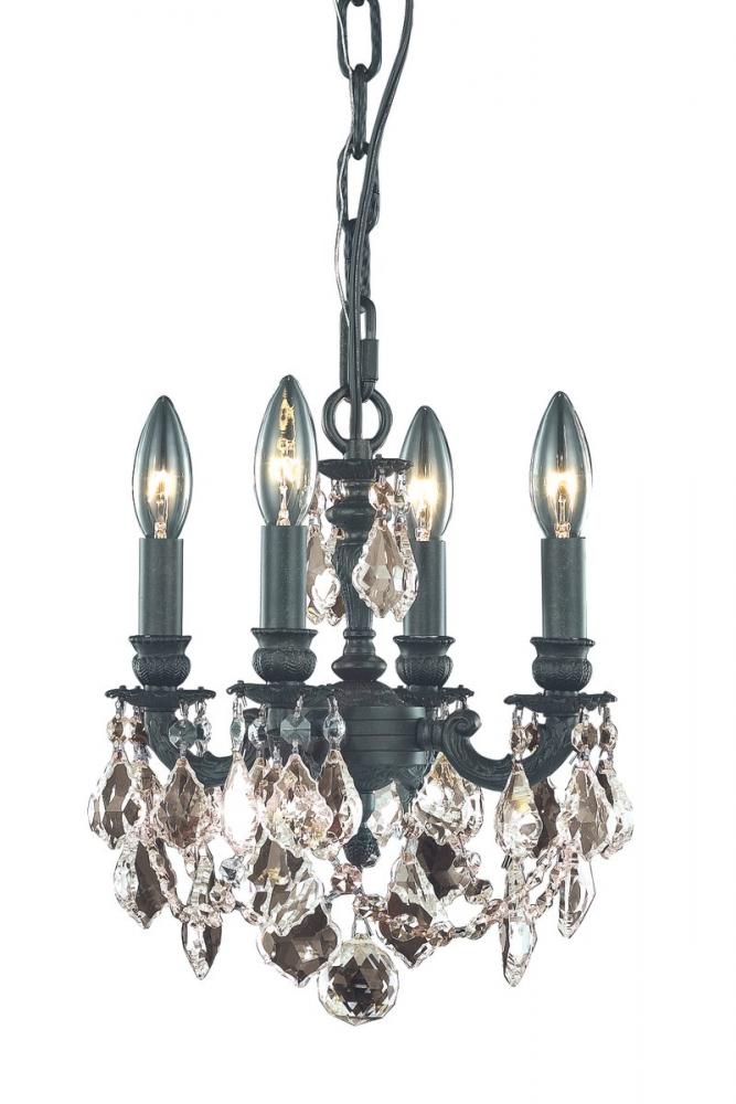 Lillie collection hanging fixtures radiate glamor and sparkle in a compact design that includes an attractive etched base in dark bronze, French gold, and pewter. Undulating branches leading to three or four candelabra bulbs (not included) are highlighted by hanging pendeloque crystals. Additional crystal strands create a circular wall of light at the bottom of this sophisticated design, accented by a lovely crystal bead at the bottom. Create a stunning focal point in your dining room, living room, bedroom, bathroom, and entryway with a Lillie collection hanging fixture. Elegant-cut, royal-cut, Swarovski Elements, or Swarovski Spectra crystal trims are available in golden teak and crystal to match your décor.