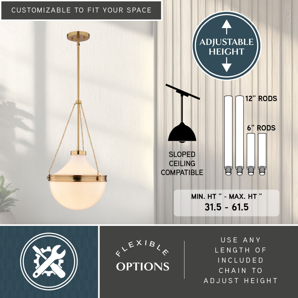 Lincoln 13-in. W 1 Light Pendant Muted Brass