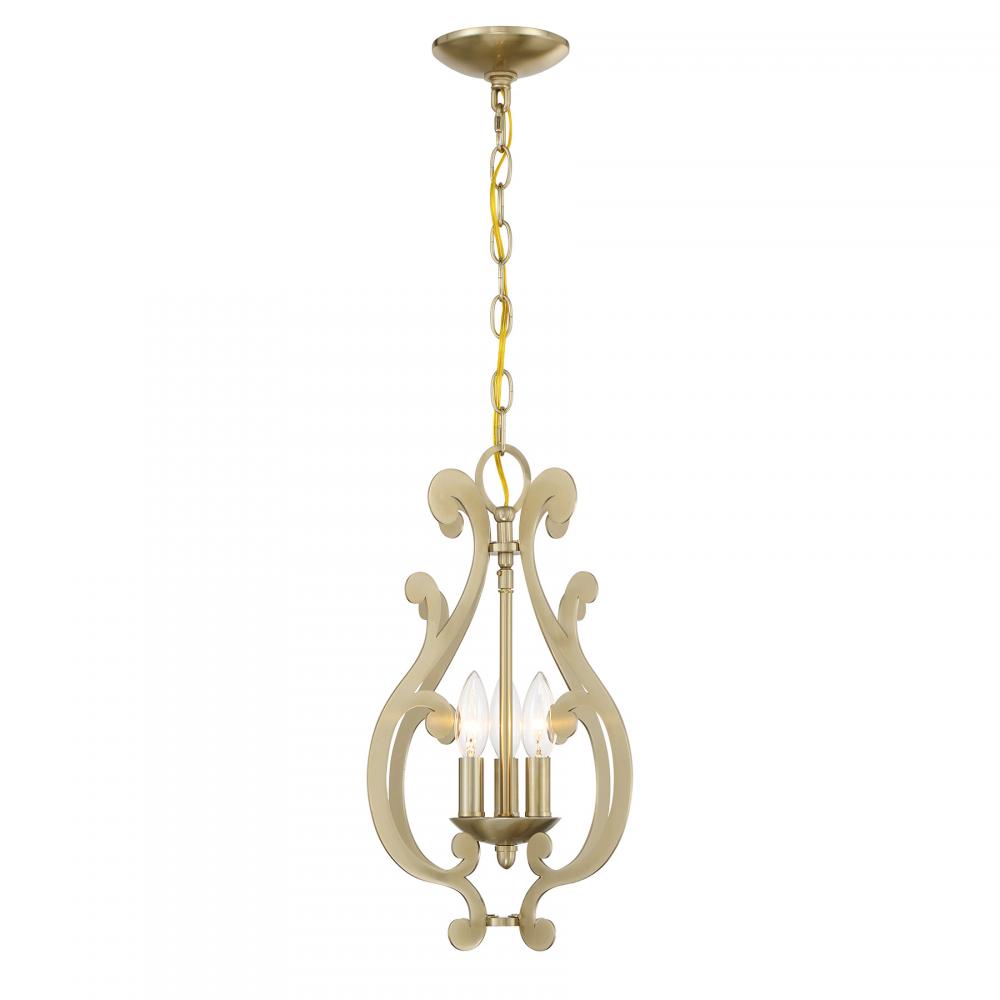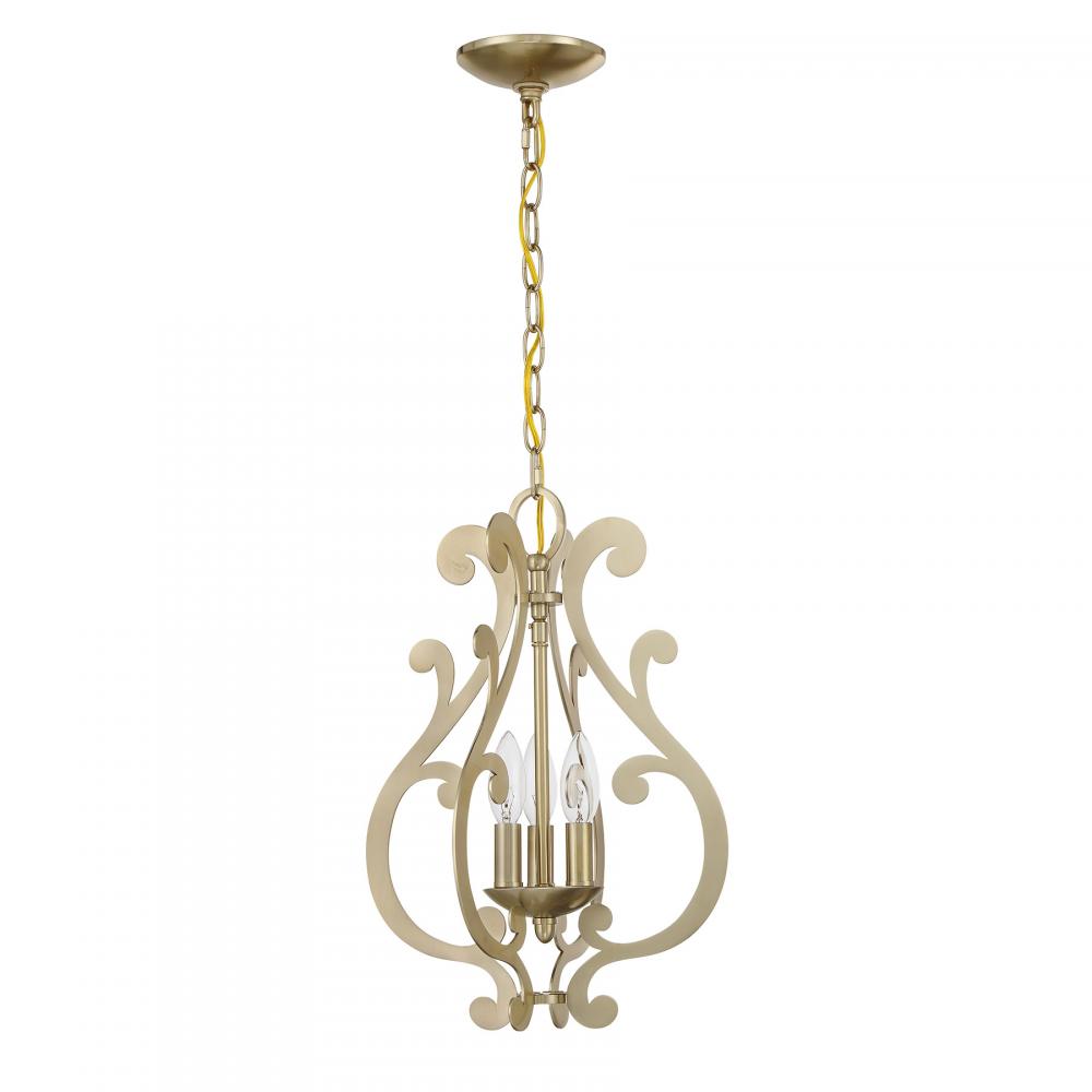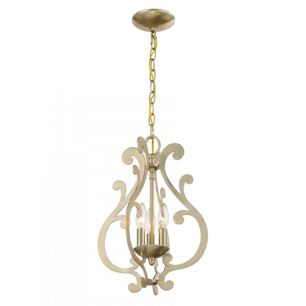 The Savoy House Lombard 3-light pendant has a delicate, ethereal look with curling, twirling flourishes and a Noble Brass finish. It is a perfect way to add elegant illumination to any room! Lombard is 17.25" in height and 12" in width. Uses three candelabra size bulbs of up to 60 watts per bulb. Bulbs not included. Comes with 120" of chain.