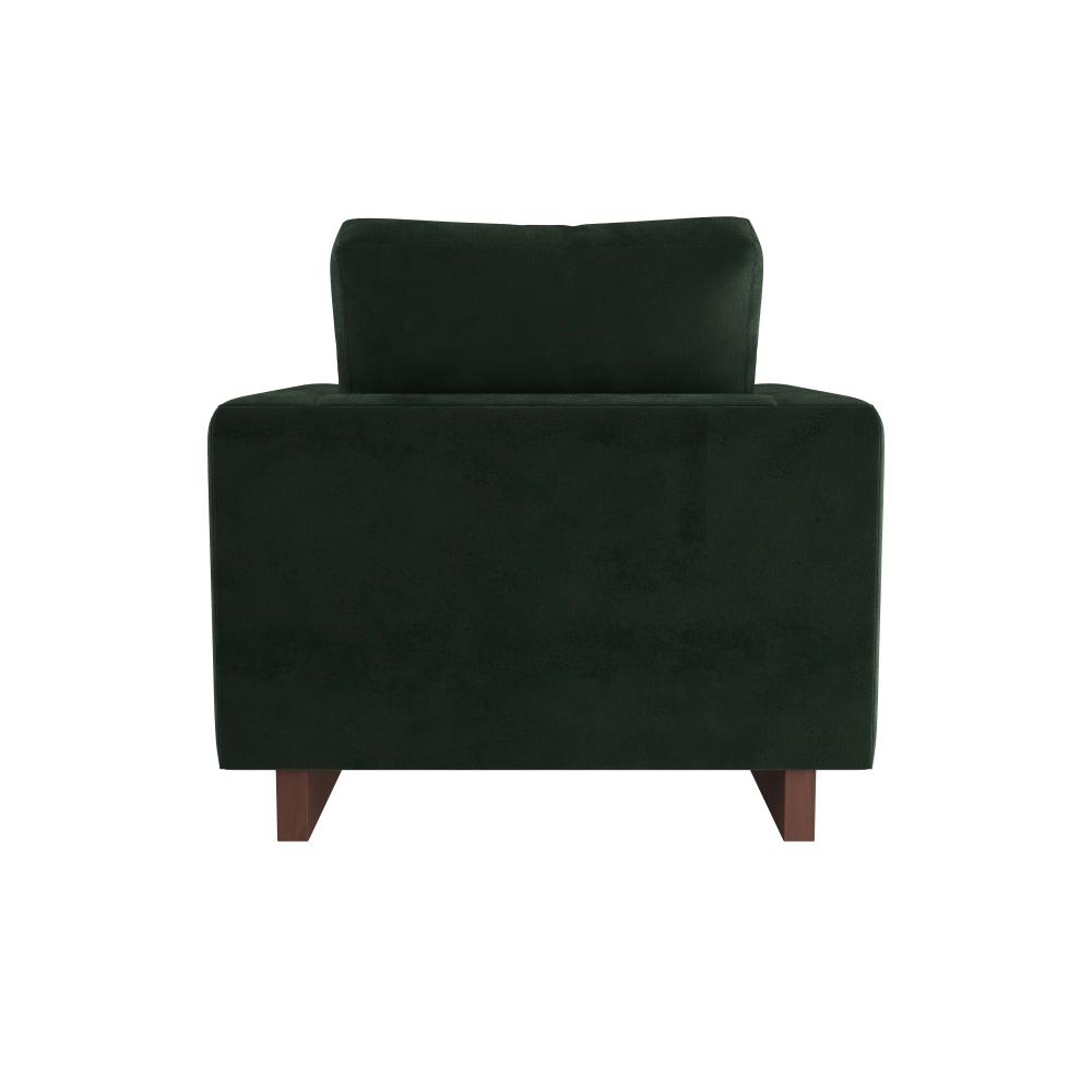 MODERN AND TIMELESS, AN EXTENSION OF THE LOVELL SOFA OFFERS A NEW TAKE ON THE TUXEDO SILHOUETTE. THE FOCAL POINT OF THIS CHAIR'S DESIGN IS ITS WRAP-AROUND, CUSHIONED ARMS, WHICH ADD A SOPHISTICATED DETAIL. FULLY UPHOLSTERED IN FOREST VELVET, THE HANDSOME FRAME RESTS ON EXPOSED WOODEN SLED LEGS IN A DARK WALNUT FINISH. TAILORED, YET COMFORTABLE, WITH FIBER-DOWN CUSHIONS AND GENEROUS PROPORTIONS. FINISH WILL VARY.