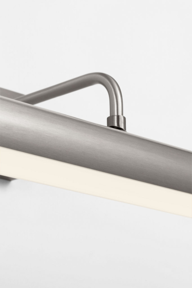 An Dedicated LED picture light with refined style, Loxen features a slender tube accented by a square backplate. A gracefully curved arm support the light while a simple round finial adds a finishing touch. A sophisticated means of illuminating wall decor, Loxen is available in three finishes.