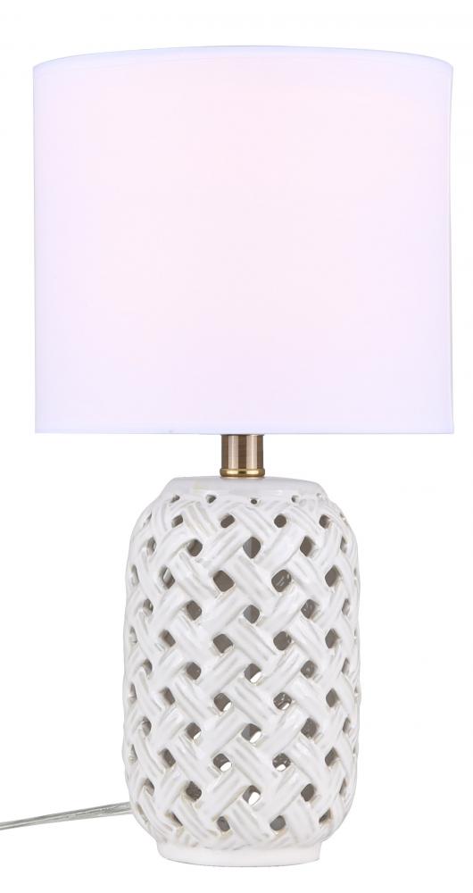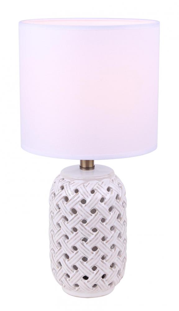 In a world where the fusion of form and function resonates with the echo of true artistry, the LUANA Table Lamp stands as a beacon of sophistication and timeless elegance. This exquisite piece, with its delicate white fabric shade, is more than a mere source of light; it's a testament to the beauty of simplicity married with luxury. The shade, a masterpiece in itself, diffuses light softly, enveloping the room in a gentle embrace that transforms mere space into a sanctuary of tranquility.Gracefully ascending from its base, the neck of the lamp is kissed by a touch of gold—a subtle yet profound nod to the timeless allure of this precious metal. This golden embrace is not ostentatious but refined, a whisper of luxury that complements the pristine white of the lamp's body. The LUANA, crafted from the finest ceramic, offers not just a tactile experience of smooth contours and impeccable finish but also serves as a symbol of enduring beauty and strength.Designed to accommodate a 60W Type A bulb, this lamp is a versatile companion to your daily life, whether it's casting a warm glow over a quiet evening of reading, illuminating the pages of a journal, or serving as the silent witness to the conversations that fill a room with life. The convenience of the on/off socket switch, seamlessly integrated into its design, ensures that light is always just a gentle touch away.With dimensions that speak to its presence—standing proudly at a height that commands attention while maintaining an air of grace and approachability—this lamp is ideally suited for any setting. Its ability to blend seamlessly into the decor, from the minimalist to the ornate, speaks to its versatile design ethos.The LUANA Table Lamp transcends its functional role to become a piece of decor that speaks volumes of its owner's taste for elegance and a refined lifestyle. Its color palette, a serene white accented with hints of gold, evokes the purity of dawn and the richness of twilight, making it a perfect addition to any room seeking a touch of sophistication.Crafted with care from ceramic, the LUANA lamp is not just an object, but a piece of art, inviting those who possess it to appreciate not just its glow but the story it tells—a story of beauty, elegance, and the timeless dance of light and shadow. It is an invitation to transform any space into a haven of style and serenity, making the LUANA Table Lamp a cherished piece for those who understand that true luxury lies in the details.