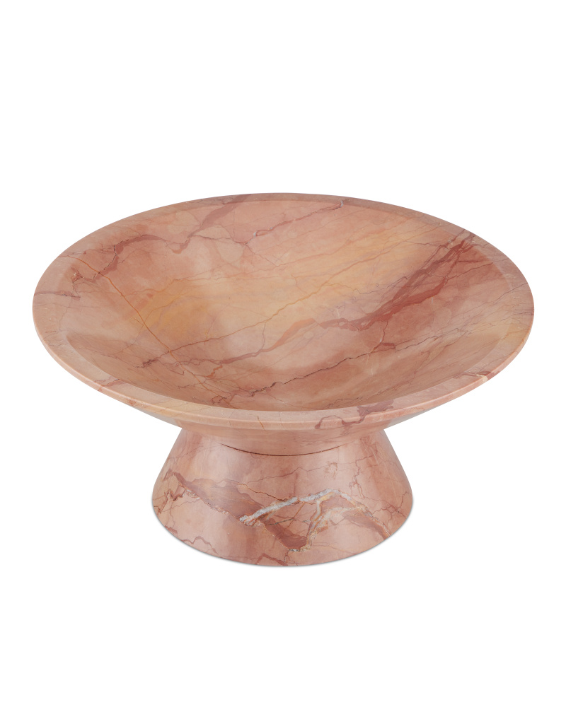 The Lubo Rosa Small Bowl is made of Rosa Cappuccino marble, which has a swirling personality as glorious as a desert sky at sunset. The pink footed bowl will be a chameleon in an interior, as it will be just as fitting for holding decorative objects in a main living space as it will be for displaying fruit on a kitchen island. The surfaces will vary from piece to piece.