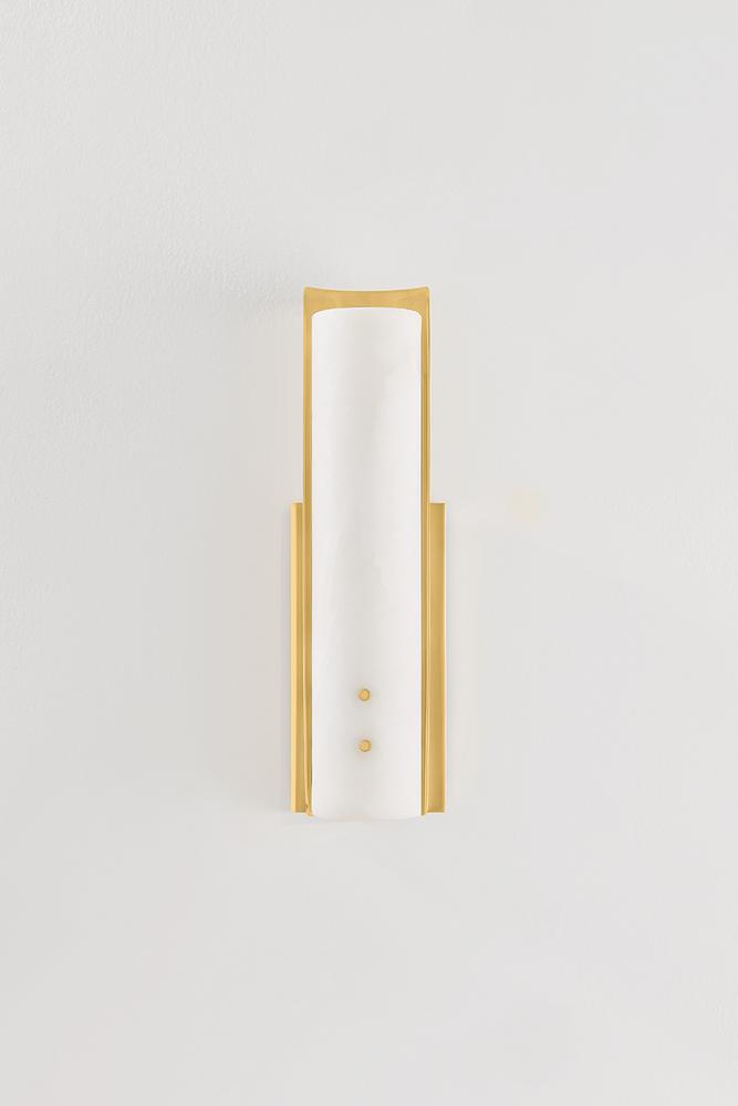 The upscale minimal design language of Lucio makes for an easy crossover from living to bath and powder room spaces. A striking inner alabaster bar is framed by Aged Brass metalwork, creating a harmony of fine materials. Delicate pins secure the stone in place, adding a decorative detail to the sleek silhouette. Lucio is available in two sizes. Due to the one-of-a-kind nature of the medium, exact colors and patterns may vary slightly from the image shown.