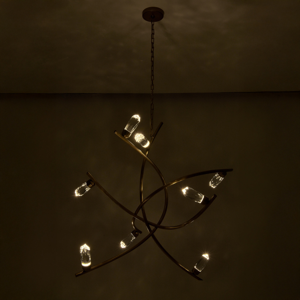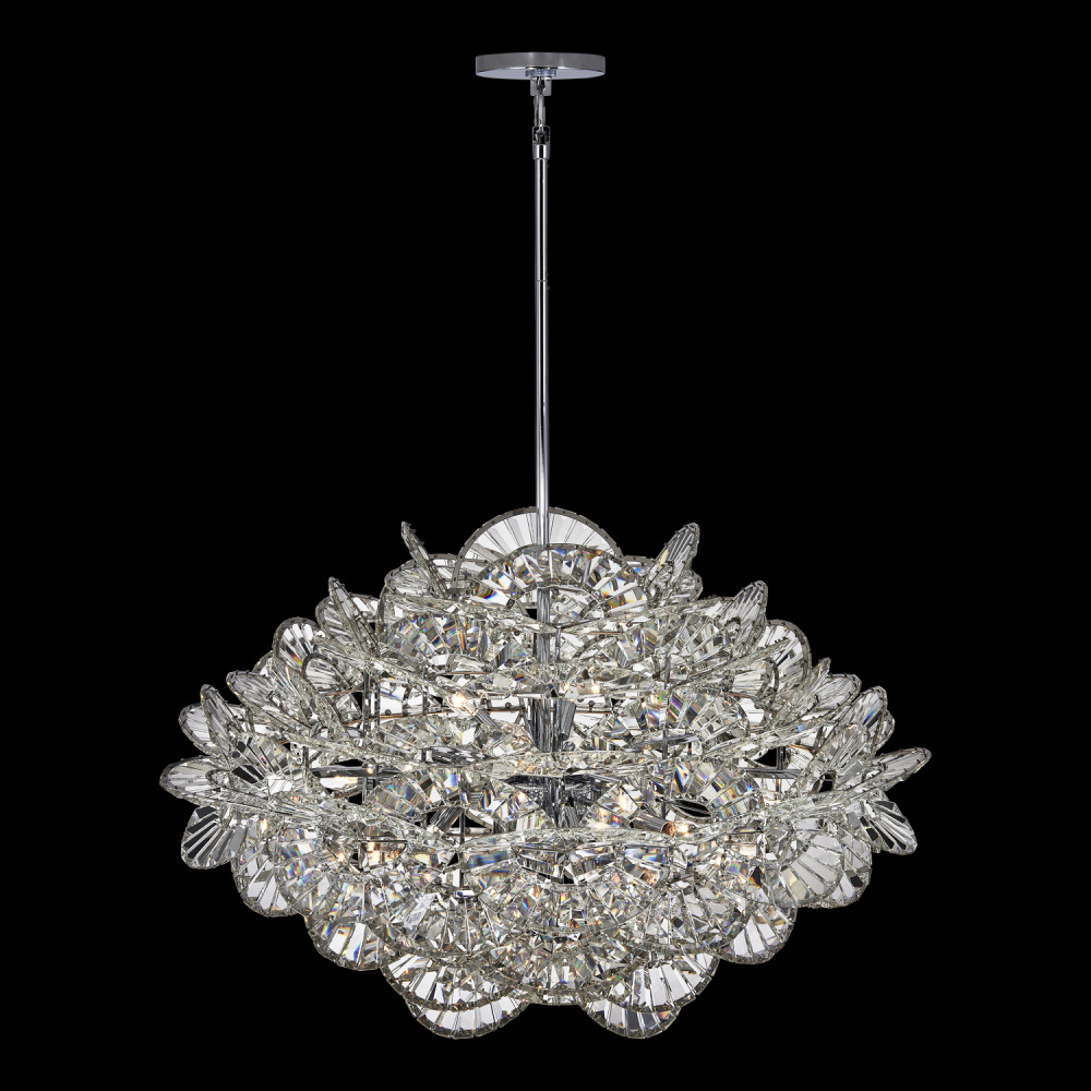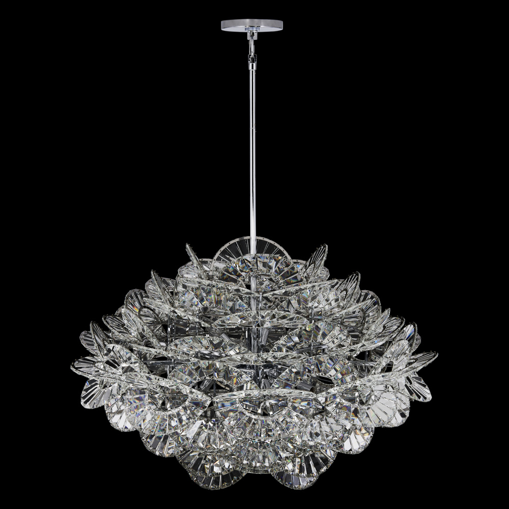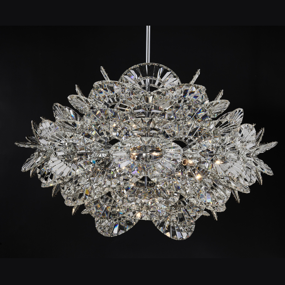 Layers of sparkling, crystal arches form the geometric, yet floral-inspired shape of these contemporary fixtures. The Polished Chrome (010) finish blends seamlessly with our Firenze crystals, adding a light and airy feel to this bold design and jewelry-like statement.