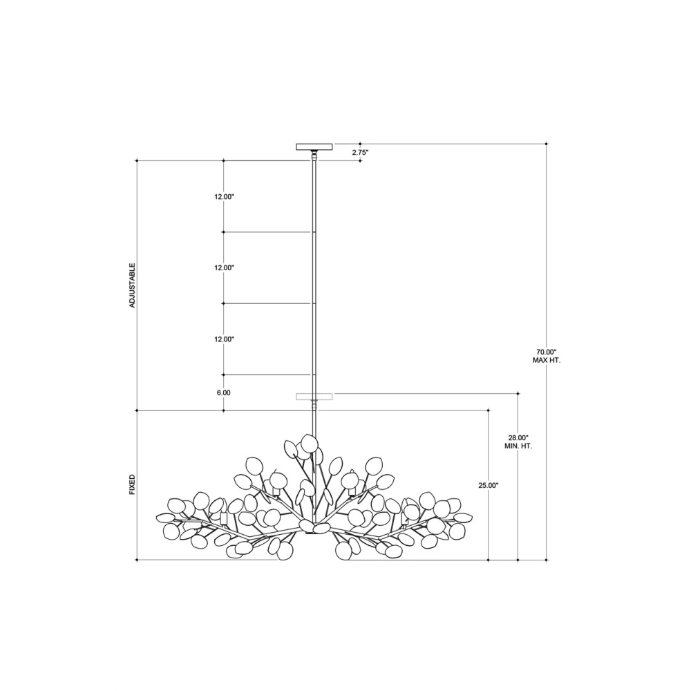 With a lyrical profile of fluttering discs that favor the leaves of its namesake plant, the Lunaria Oval Chandelier is made of wrought iron in a contemporary silver leaf finish. The bulbs that are sprinkled amongst the flowing petals of metal reflect off the finish on this silver chandelier to increase the glow. Adjustable from 28" to 70" with use of included chain/rod kit/cable. If your space calls for a longer drop, additional chain/rods/cable is available for purchase.