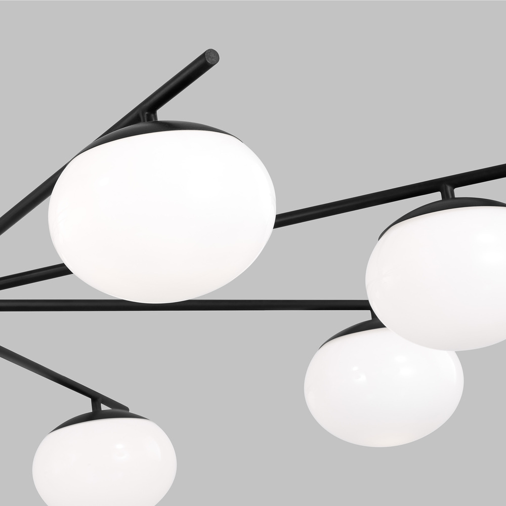 The Lune mid-century modern collection from Ellen DeGeneres is offered in two finishes including Aged Iron and Burnished Brass. The symmetrical abstract of the silhouette is deceptively simple with your attention being drawn to the milk glass shade featuring no visible hardware. We are expanding this floor lamp to a full series and adding an Aged Iron finish option. Lune has a simple yet sophisticated design. The slender metal frame features Aged Iron or Burnished Brass arms that are complete with a white glass globe at each end. The brass accents handsomely complement the black or brass frame to create a mid-century modern vibe.