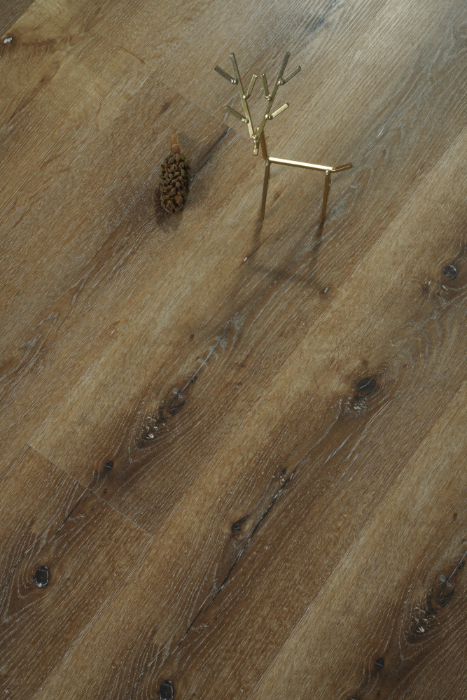 A rustic-inspired finish with deep knots and rich wood grain detailing, bringing warmth, texture, and an authentic reclaimed wood look to any space.
