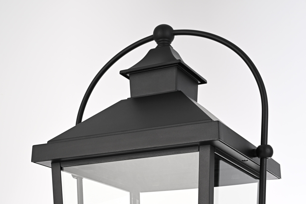 This post light brings a classic lantern silhouette to outdoor spaces, blending traditional design with modern functionality. The tapered rectangular frame, topped with a pitched roof and curved side supports, creates a distinctive, old-world charm suited for both historic and contemporary homes. Made from iron and aluminum, the sturdy metal frame ensures durability, while the clear glass panels allow maximum light output, making this fixture both decorative and functional. Designed to fit standard 3.23-inch post light poles (pole not included), it offers flexibility for placement in driveways, pathways, and garden landscapes. This fixture supports a medium-base E26 light bulb (not included) and is dimmable, allowing for adjustable brightness. ETL Wet Rated for outdoor durability, this post light is built to withstand the elements while enhancing exterior spaces with a structured and timeless presence. Built with marine-grade, corrosion-resistant aluminum, this sconce withstands coastal conditions for long-lasting durability.