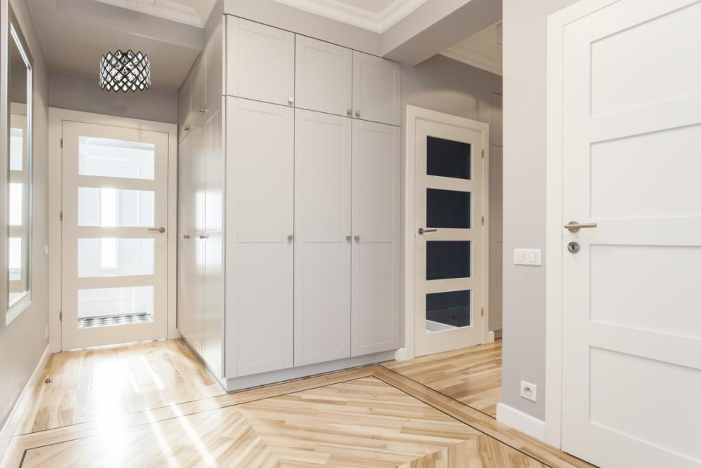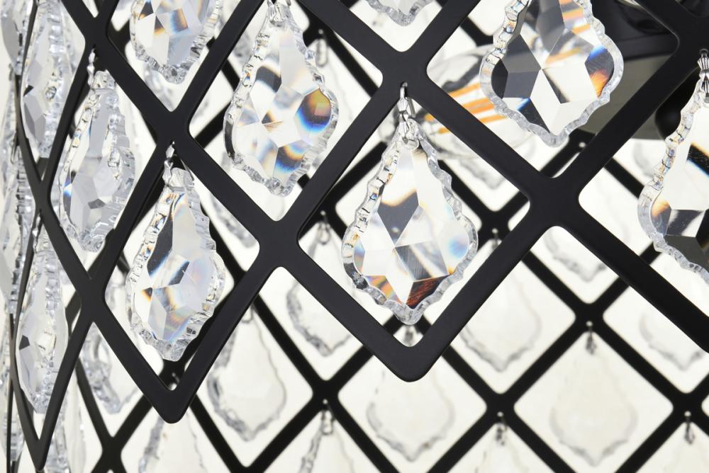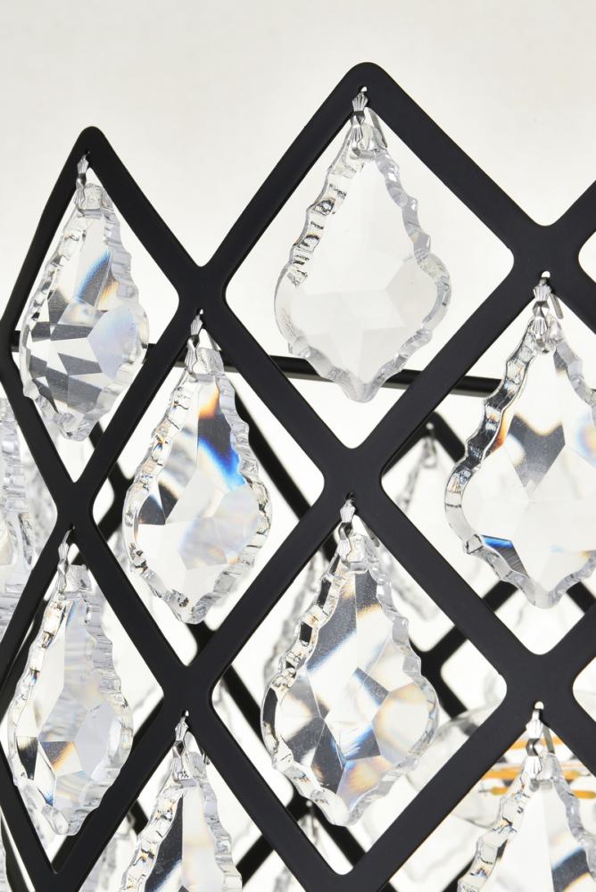 Tiers of clear multi-faceted crystals reflect the soft glow of candelabra bulbs