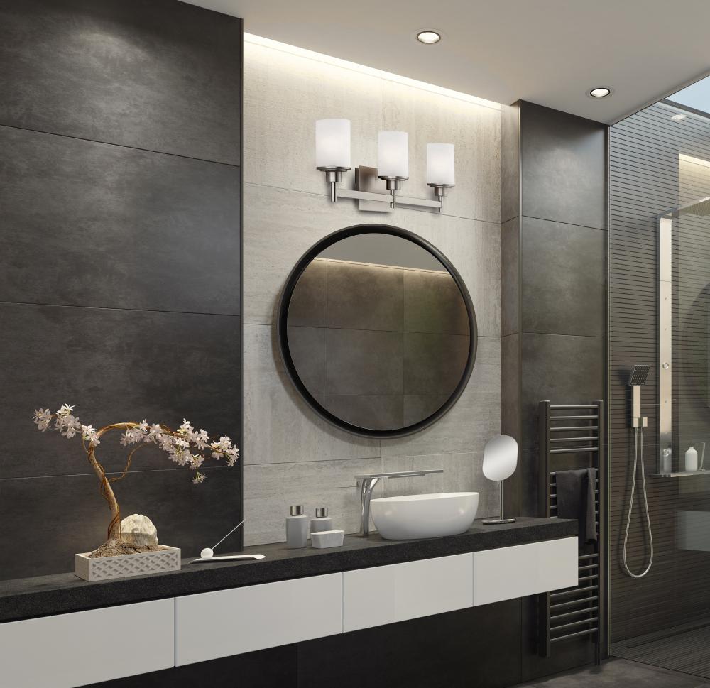 The Lyndi 3 Light Vanity, Nickel Finish captures the spirit of Mediterranean allure. A stunning piece that combines Brushed Nickel and User Replaceable Bulb to create an unforgettable ambiance.