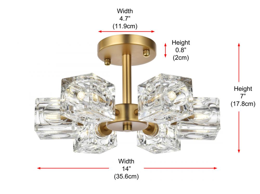 Effortlessly merging modern aesthetics with a touch of brilliance, our flush mount boasts a compact size of 14 inches in both in length and width, ensuring a sleek and sophisticated presence.