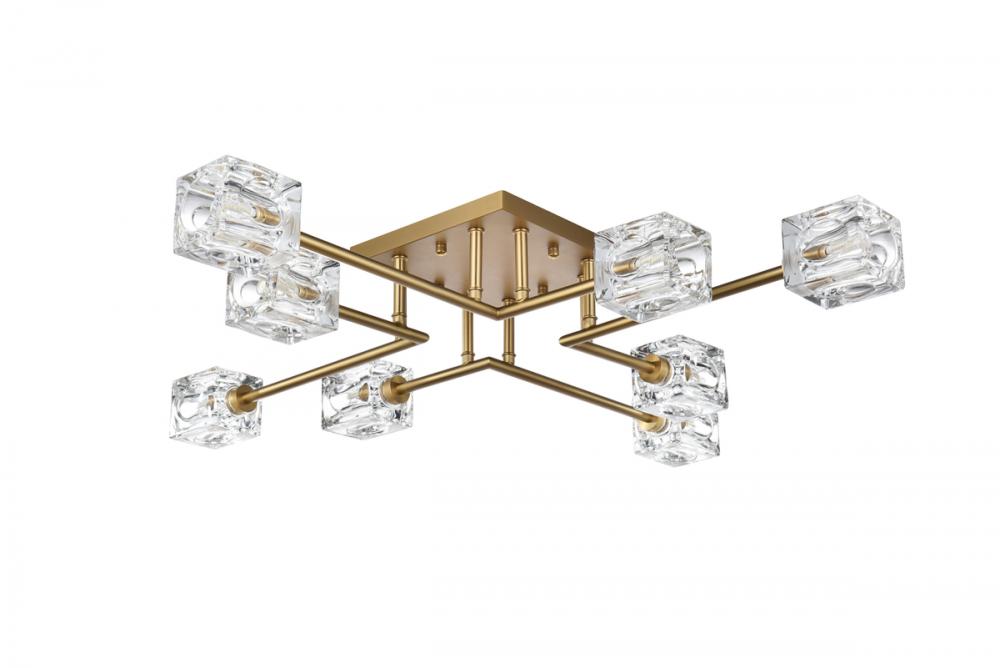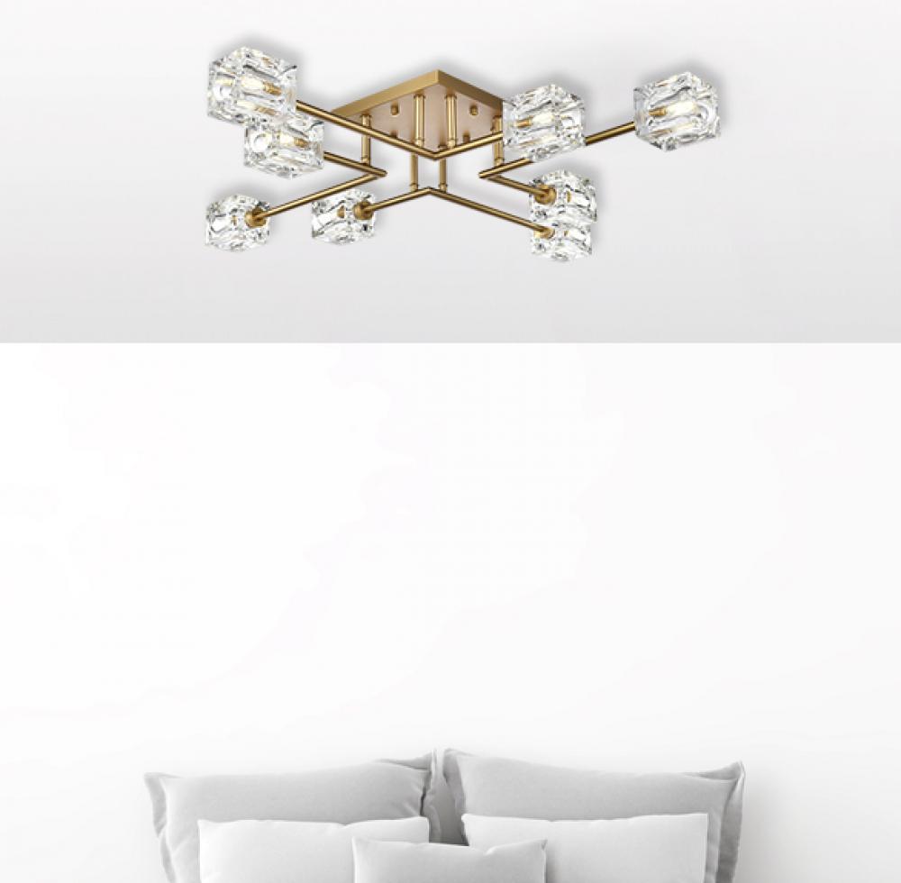 Eight lights project boldly, each boasting a distinctive dimpled square glass for a uniquely dynamic and stylish look.