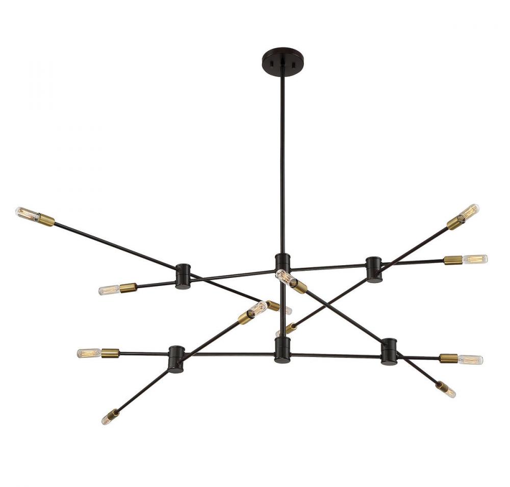 The open, structured look of the Savoy House Lyrique 12-light two-tier chandelier is a great choice for today's stylish interiors. The arms are adjustable, allowing you to create custom looks and change them on the fly. Finished in bronze with brass accents. The hanging height is adjustable and this fixture can be mounted on a sloped ceiling. Chandeliers can be used in a wide variety of spaces, including but certainly not limited to dining rooms, living rooms, great rooms, bedrooms, kitchens, foyers, offices and even bathrooms! Bulbs not included. Try using stylized bulbs such as tubular shape for a different look! The finish can be matched with bronze or brass hardware or mixed with hardware in other finishes. Lyrique is perfect for contemporary style spaces and any room that has an edgy touch. When you choose a Savoy House lighting fixture, you can be certain you’ve selected a piece that will withstand the test of time.