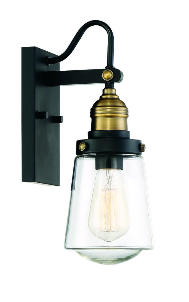 Exterior light fixtures tell people about your design sense before they’ve ever walked into your home. Make sure you’re sending the message you want, with stylish exterior porch lights like the Macauley 1-light wall lantern from Savoy House. Fashionably designed with mixed metals, this trend-conscious yet timeless outdoor lantern features a vintage black metal body with warm brass accents. The single bulb is enclosed in clear glass. Designed to complement homes with traditional, transitional, mid-century modern, industrial, rustic and urban farmhouse interiors, this exterior wall sconce is universally pleasing. And since it’s expertly manufactured with quality components, you’ll enjoy greeting visitors with it for many years to come.