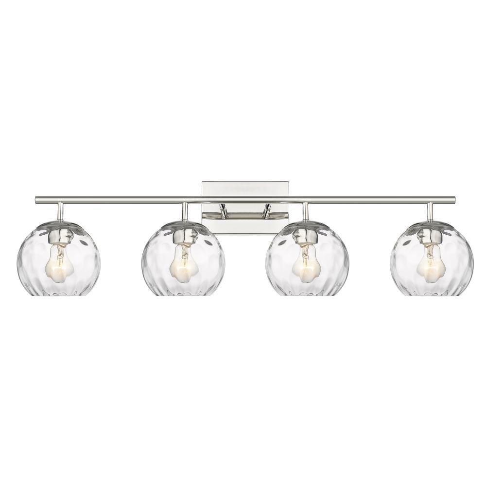 Mackenzie Polished Nickel 4-Light Bath Vanity with Rippled Water glass