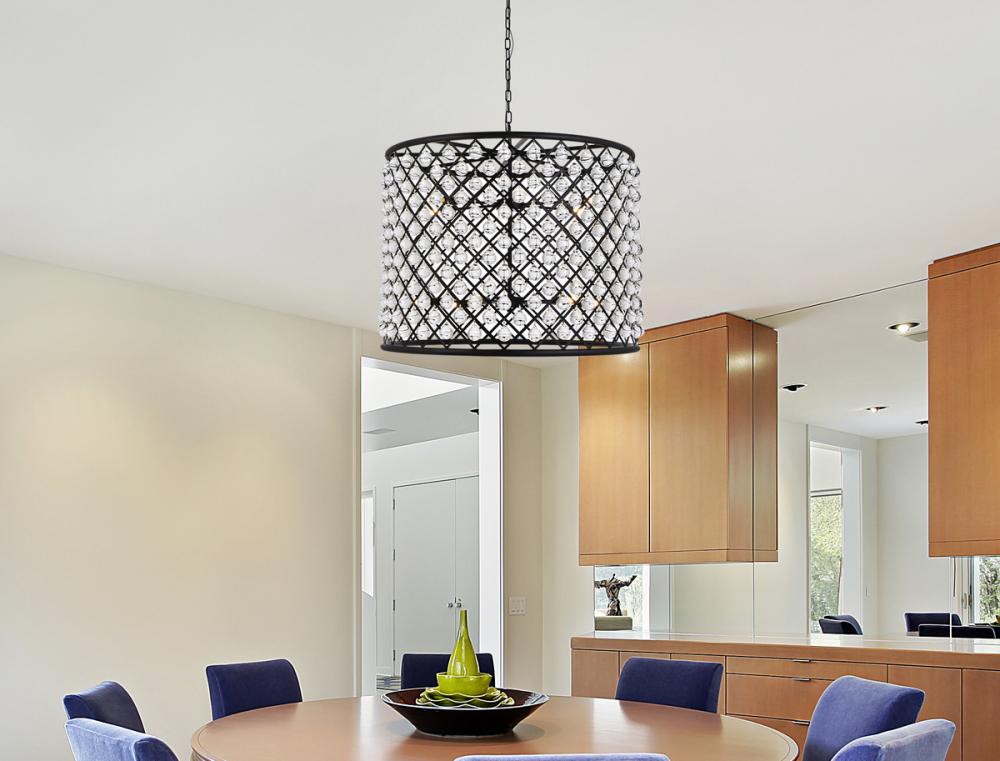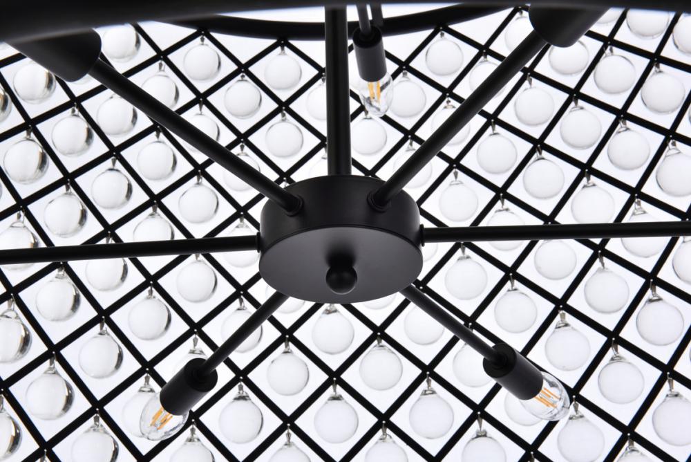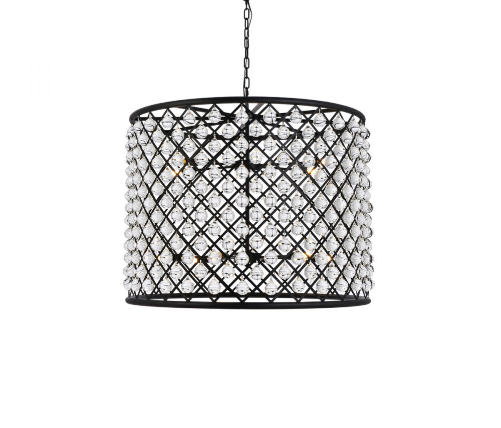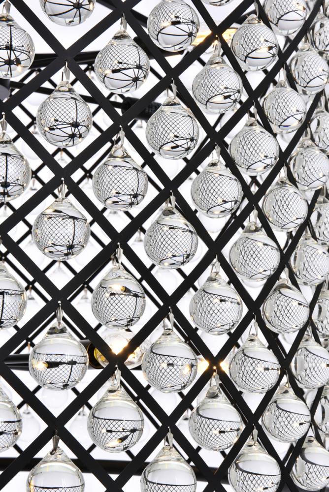 Modern simplicity meets organic beauty in the breathtakingly unique Madison collection. Hand-polished, multifaceted clear crystal spheres shimmer like dewdrops in a circular forged-iron grid with a golden-iron, Matte Black, or polished-nickel finish. These airy pendant lamps will brighten up a kitchen, dining room, foyer, or stairwell in an explosion of reflected light.