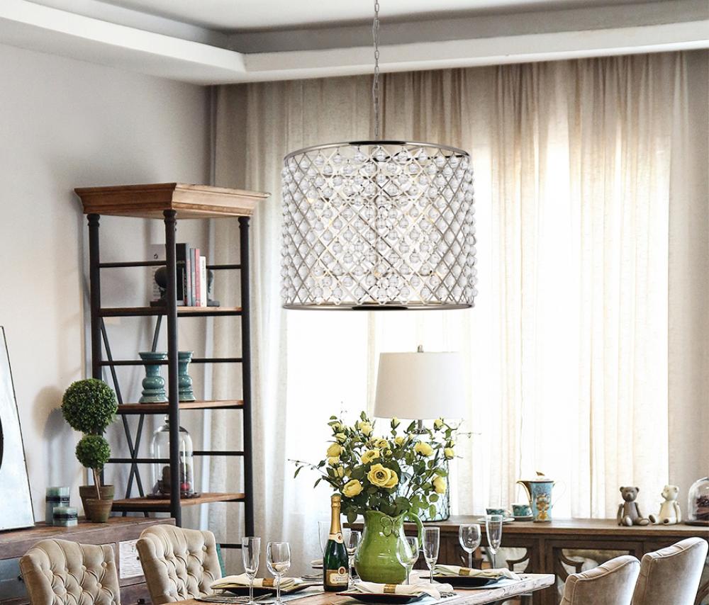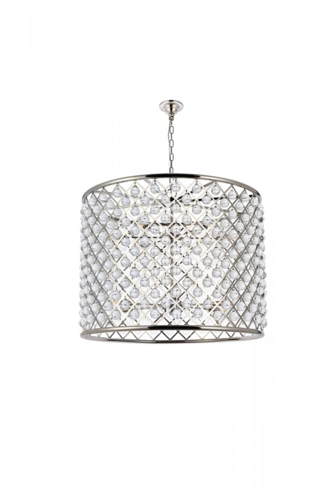 Modern simplicity meets organic beauty in the breathtakingly unique Madison collection. Hand-polished, multifaceted clear crystal spheres shimmer like dewdrops in a circular forged-iron grid with a golden-iron, mocha-brown, or polished-nickel finish. These airy pendant lamps will brighten up a kitchen, dining room, foyer, or stairwell in an explosion of reflected light.