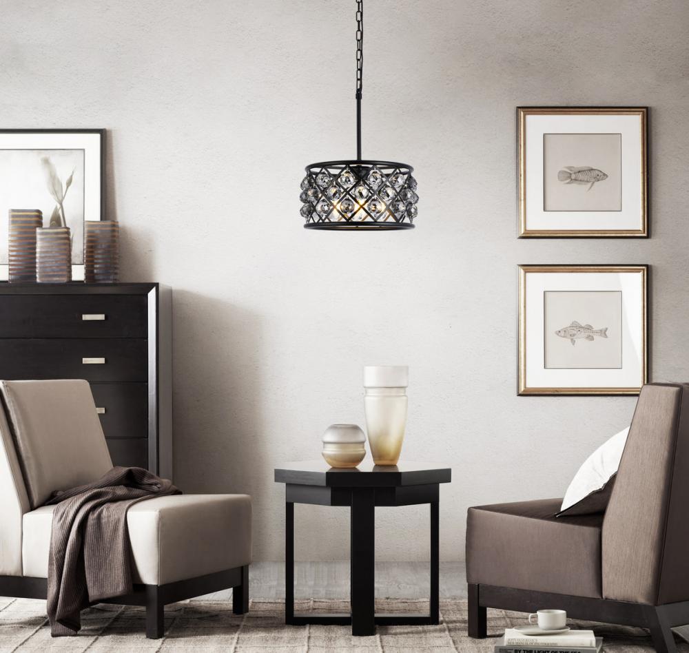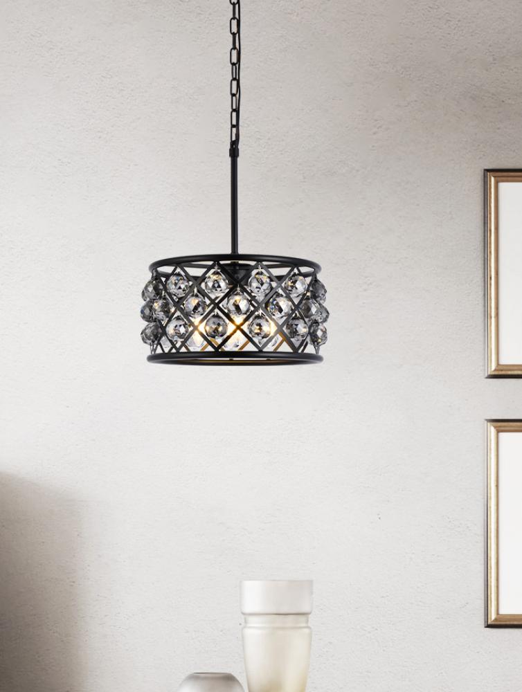 Modern simplicity meets organic beauty in the breathtakingly unique Madison collection. Hand-polished, multifaceted clear, golden-teak, or Silver-shade crystal spheres shimmer like dewdrops in a circular forged-iron grid with a golden-iron, Matte Black, or polished-nickel finish. These airy pendant lamps will brighten up a kitchen, dining room, foyer, or stairwell in an explosion of reflected light.