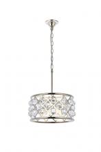 Lamp features a diameter of 16 inches, a height of 9 inches, a minimum hanging length of 15 inches, a maximum hanging length of 69 inches, and requires 4 candelabra bulbs