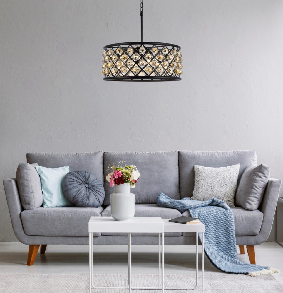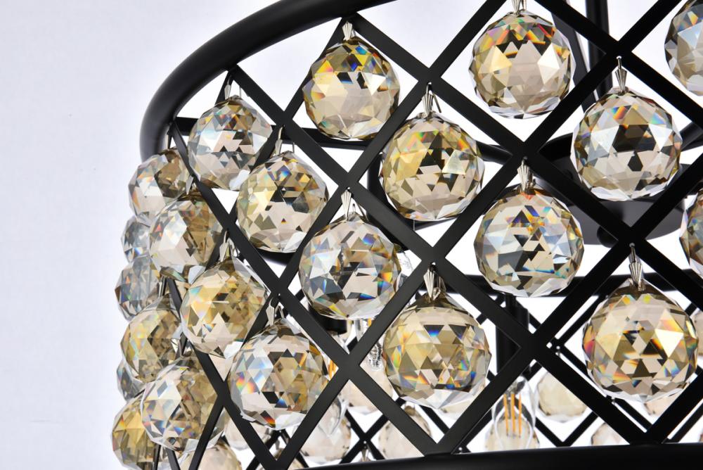 Modern simplicity meets organic beauty in the breathtakingly unique Madison collection. Hand-polished, multifaceted clear, golden-teak, or Silver-shade crystal spheres shimmer like dewdrops in a circular forged-iron grid with a golden-iron, Matte Black, or polished-nickel finish. These airy pendant lamps will brighten up a kitchen, dining room, foyer, or stairwell in an explosion of reflected light.