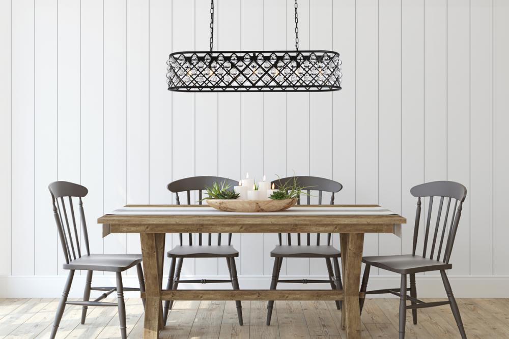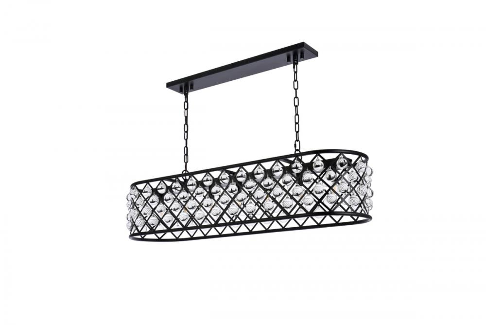 Modern simplicity meets organic beauty in the breathtakingly unique Madison collection. Hand-polished, multifaceted clear crystal spheres shimmer like dewdrops in an oblong forged-iron grid with a golden-iron, Matte Black, or polished-nickel finish. These airy chandeliers will brighten up a kitchen, dining room, foyer, or stairwell in an explosion of reflected light.