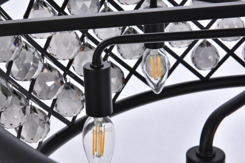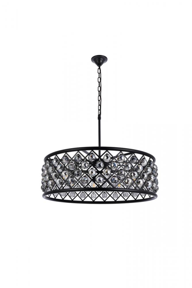 Lamp features a diameter of 32 inches, a height of 10.5 inches, a minimum hanging length of 16 inches, a maximum hanging length of 70 inches, and requires 8 candelabra bulbs