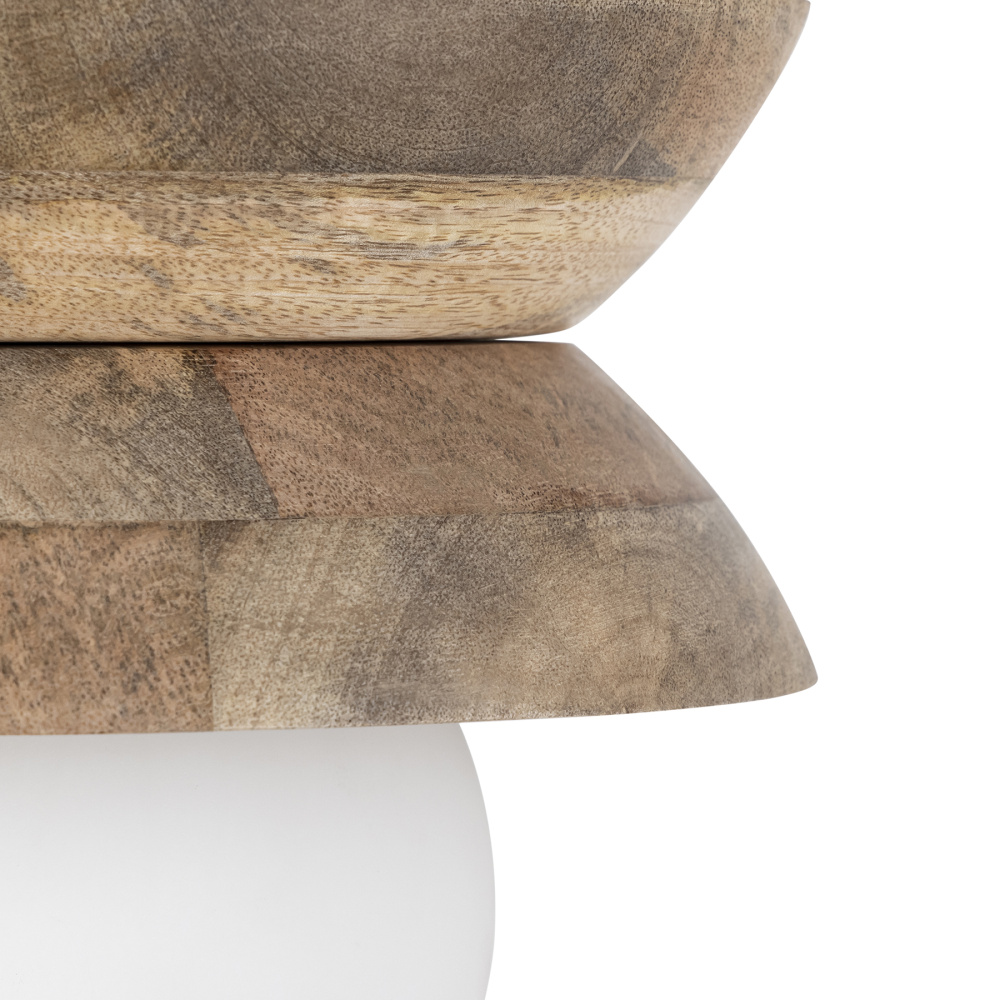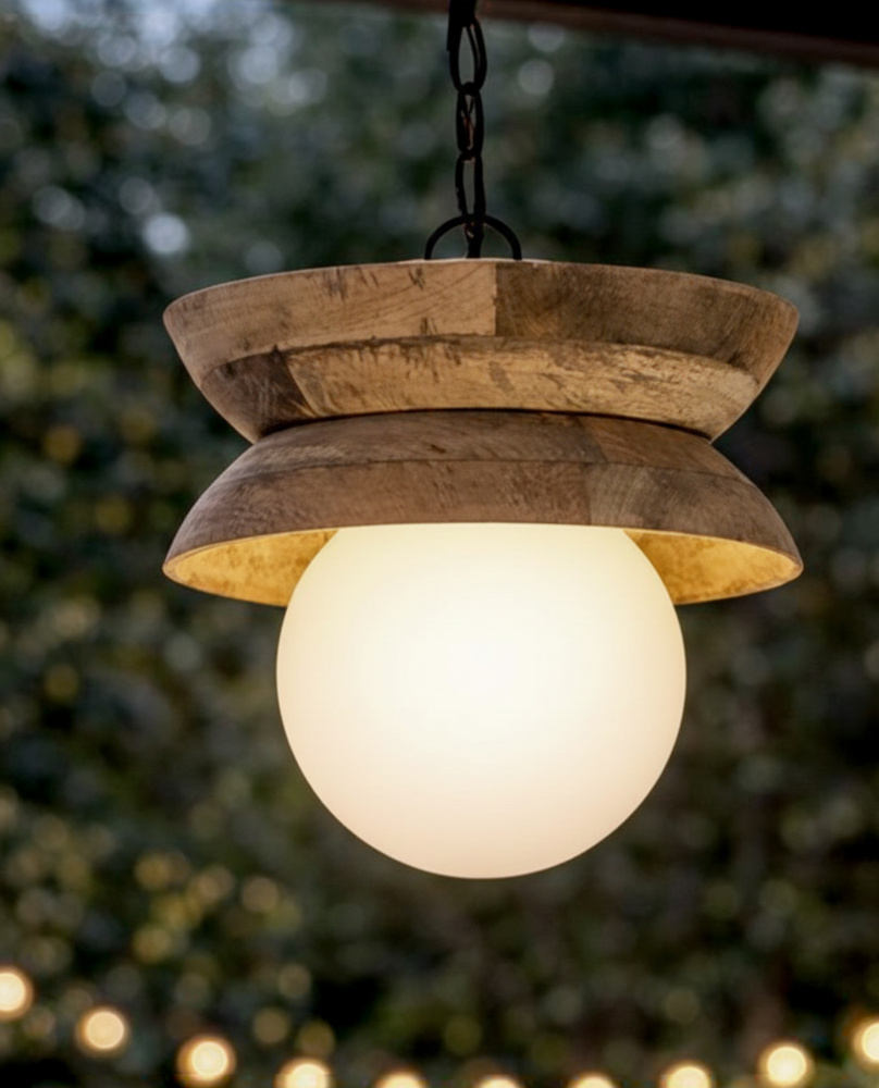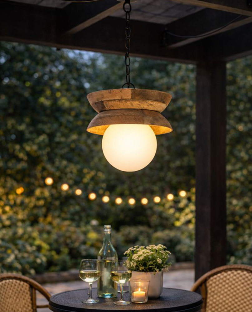 Modern Wood Pendant Light: A mango wood shade paired with an opal glass globe creates a pendant that is both contemporary and biophilic. Its natural texture adds warmth and subtle luxury.