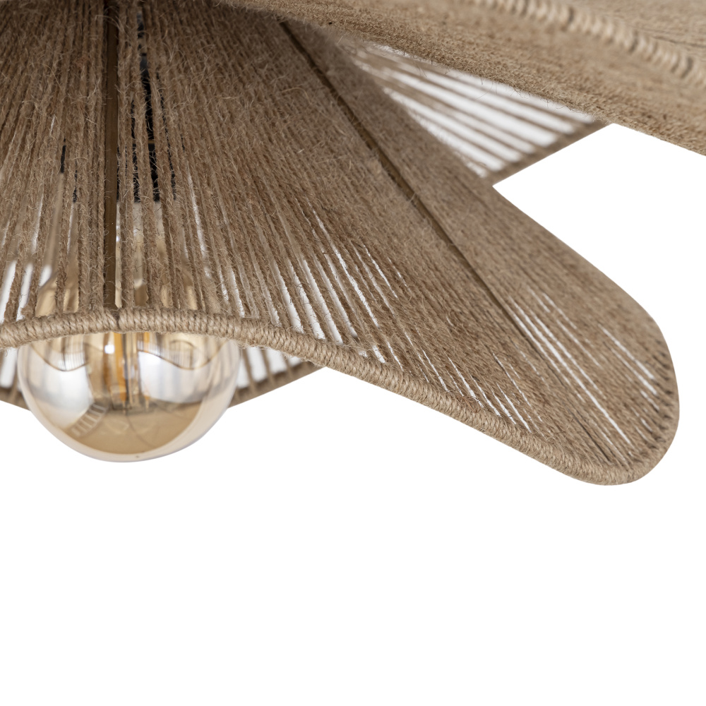 The MALANA swag pendant captures contemporary simplicity with a natural, calming presence. Crafted in a soft beige jute, its woven shade adds texture and warmth, blurring the lines between nature, art, and daily living. At 31.5 inches wide, this 1-light pendant makes a striking yet soothing statement, perfect for dining areas, living rooms, or covered patios. Designed with convenience in mind, it includes a 5-foot chain, an 18-foot cord with an on/off switch, and a swag kit; no hardwiring or installation required. Damp-rated for covered outdoor patio use, MALANA seamlessly extends the interior style to outdoor living spaces. With its natural fibres, muted tones, and soft curves, this pendant creates lighting that restores and inspires.