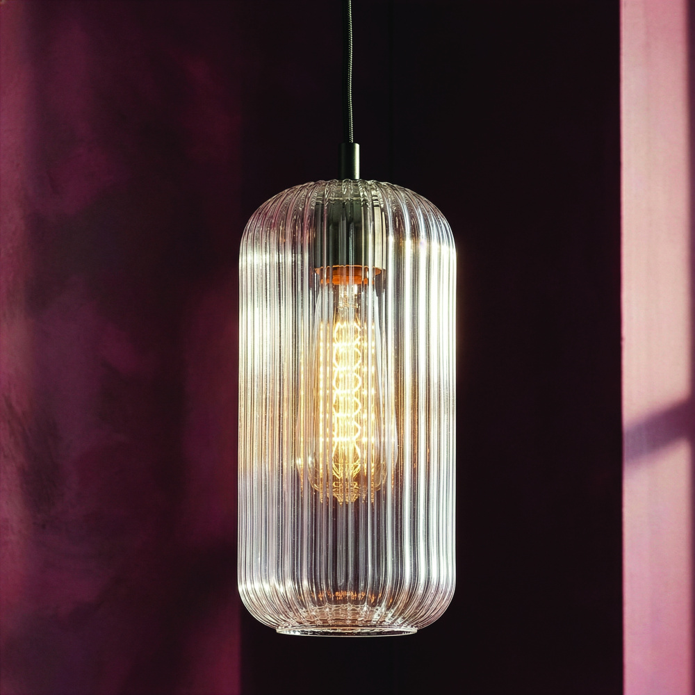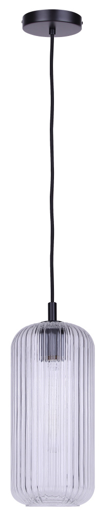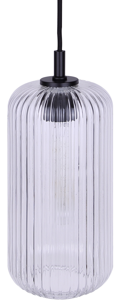 Malek 1-Light Corded Pendant Matte Black with Clear Ribbed Glass