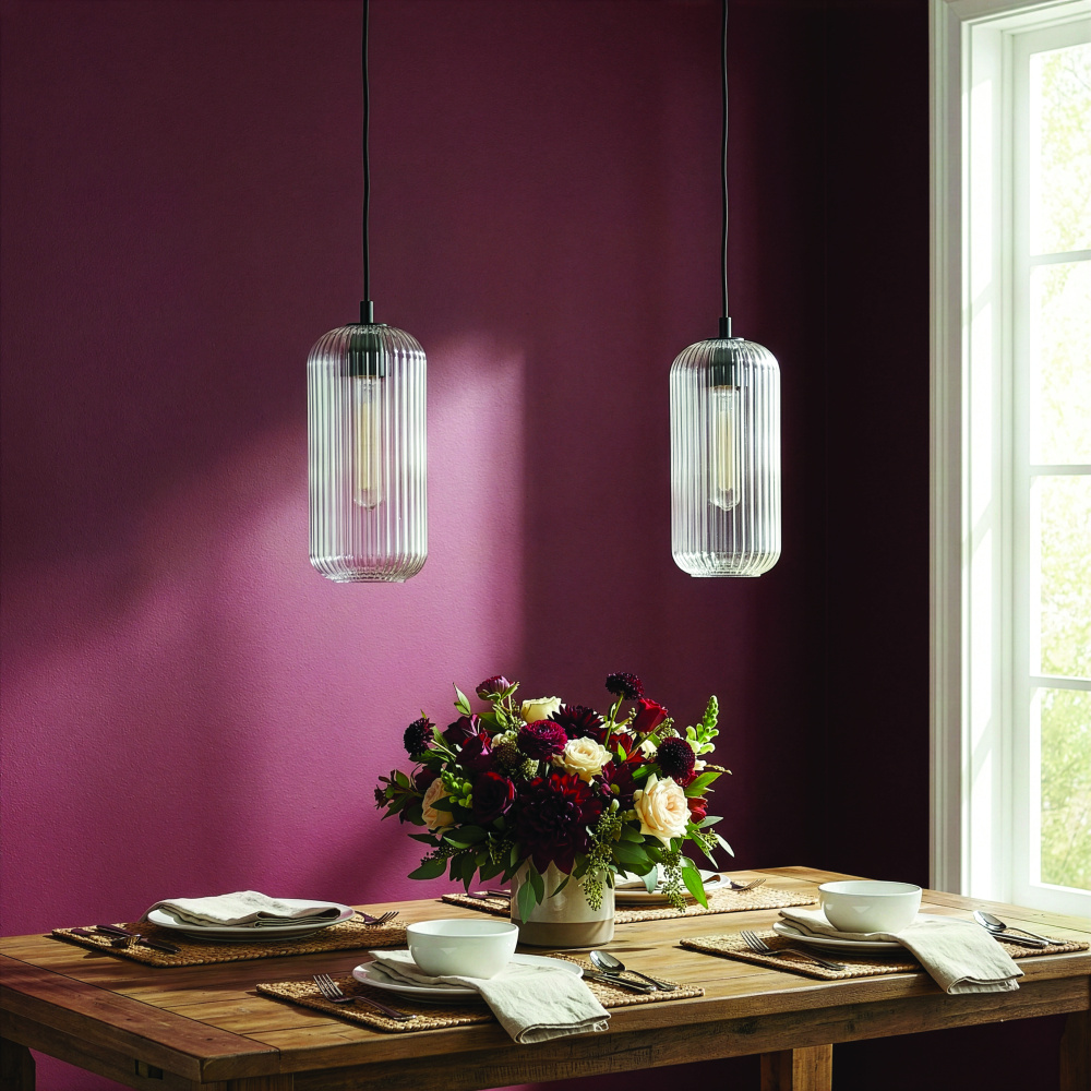 The MALEK 1-light cord pendant in matte black blends modern minimalism with subtle elegance, making it ideal for kitchens, dining rooms, or flanking a bathroom mirror. Its ribbed clear glass shade diffuses light into a warm, welcoming glow that combines practicality with style. The adjustable cord length from 16 to 63 inches allows it to suit various ceiling heights and room configurations. Rated for damp environments, MALEK ensures builder-grade durability with a sleek, refined appearance. Compact yet eye-catching, it introduces contemporary sophistication without dominating the space. Perfect for new construction or renovations, this pendant provides a quietly stylish and adaptable lighting solution.