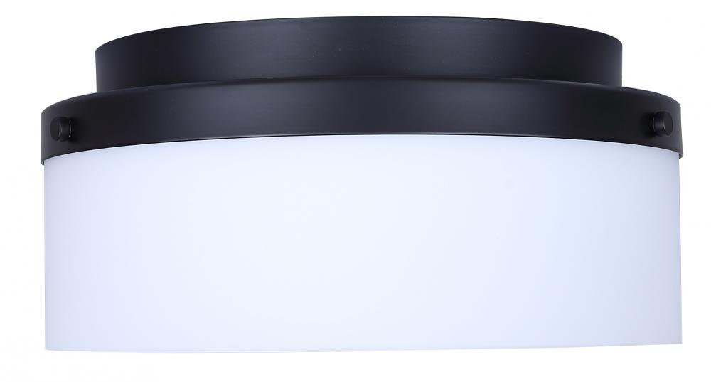 MALLOY 12.25 in. 2-Light 60-Watt Modern Black Flush Mount with Flat Opal Glass Shade