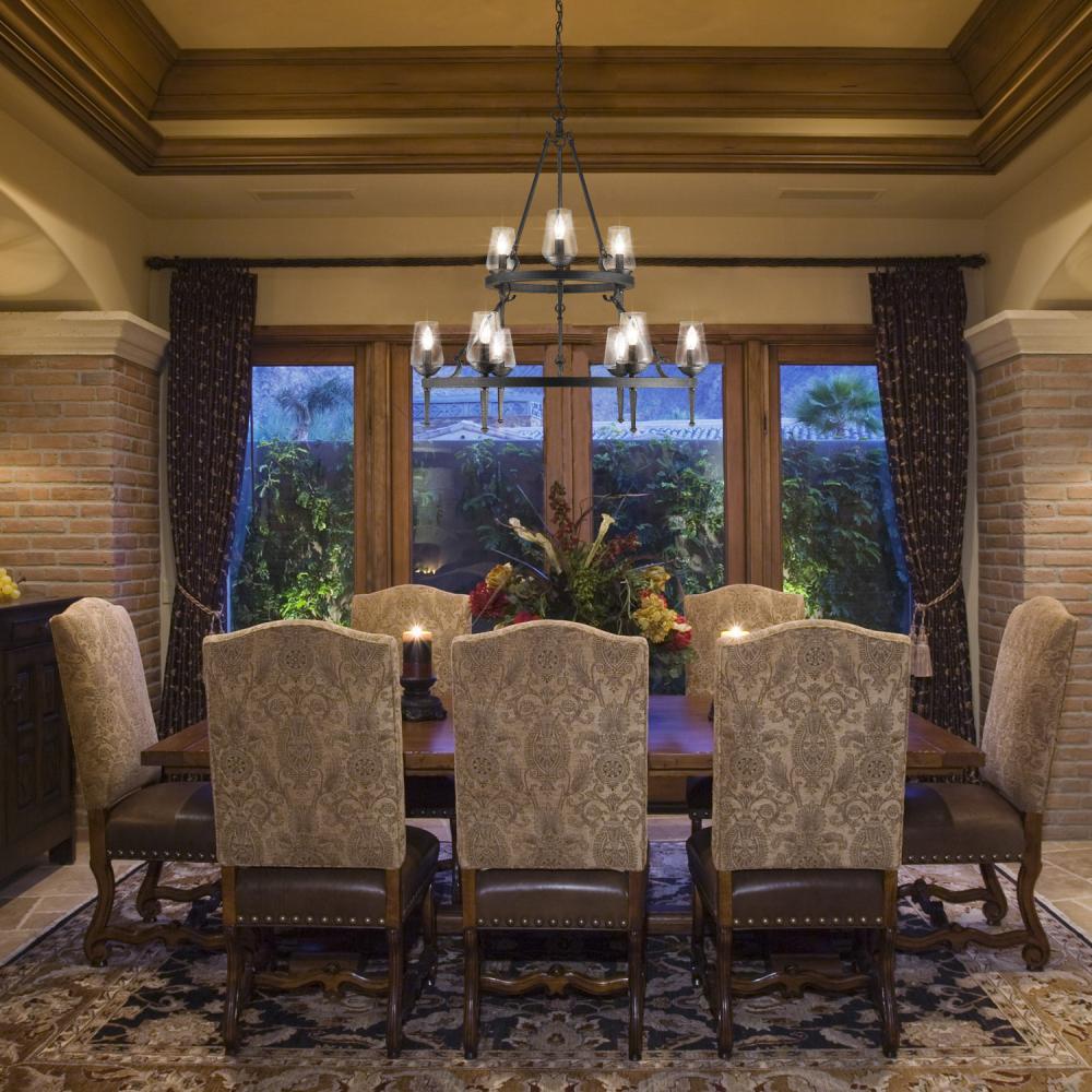 The rustic, hammered steel fixtures of the Marcellis collection lend texture and dimension to a room. The hand-painted Dark Natural Iron finish is lightly distressed. Steel candles and candelabra bulbs are encased in hand-blown clear glass for a distinctly traditional look. Chandeliers create stylish focal points and this 2 tier - 9-light chandelier is graciously sized for large dining, living, foyers and entries with higher ceilings.