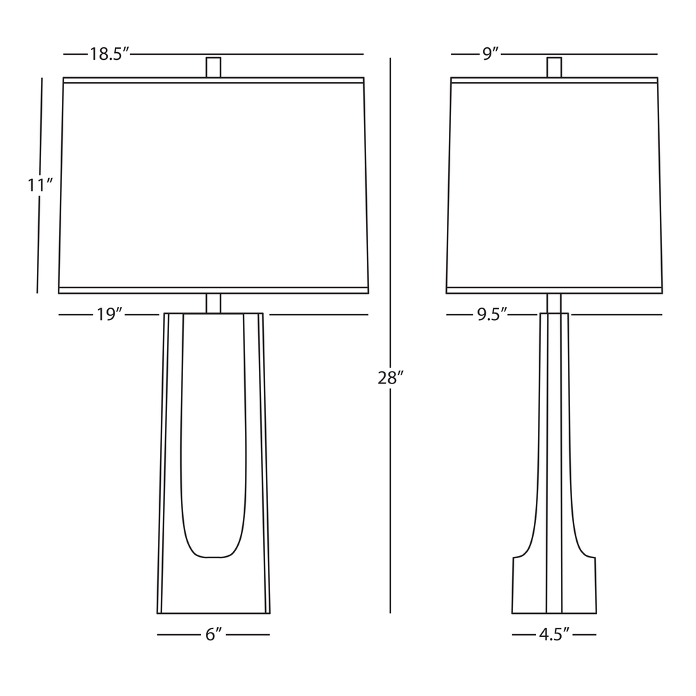 Margeaux's slender profile is accentuated with subtle and elegant curves. A brushed metal accent in the center of this design provides just the right amount of contrast Polished Nickel Finish with Matte Nickel Accents Margeaux Table Lamp with White Oval Organza Shade