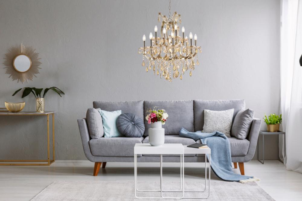 A heavenly high point to your home, Maria Theresa collection pendant lamps are ablaze with hundreds of resplendent crystals. Copious strands of sparkling clear or golden-teak crystals dangle from elaborate tiers of glass-coated steel arms in your choice of a chrome, gold, golden-teak, white, or black finish. An imperial favorite for the stairwell, dining room, or living room.