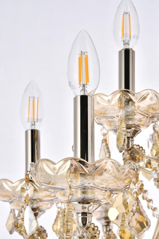 Lamp features a diameter of 27 inches, a height of 26 inches, and requires 13 candelabra bulbs