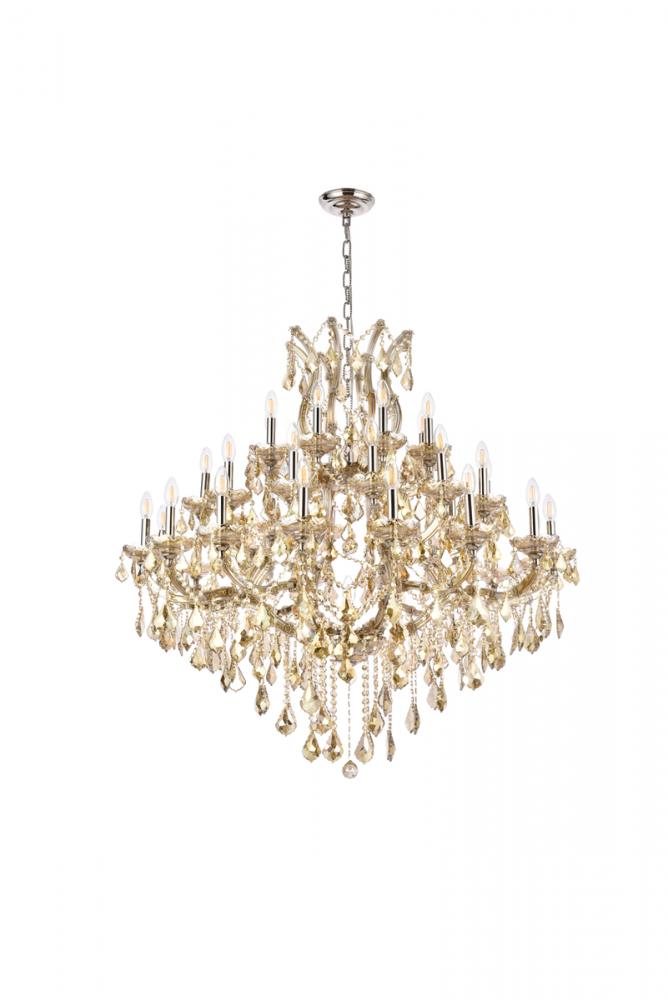 Lamp features a diameter of 44 inches, a height of 44 inches, and requires 37 candelabra bulbs