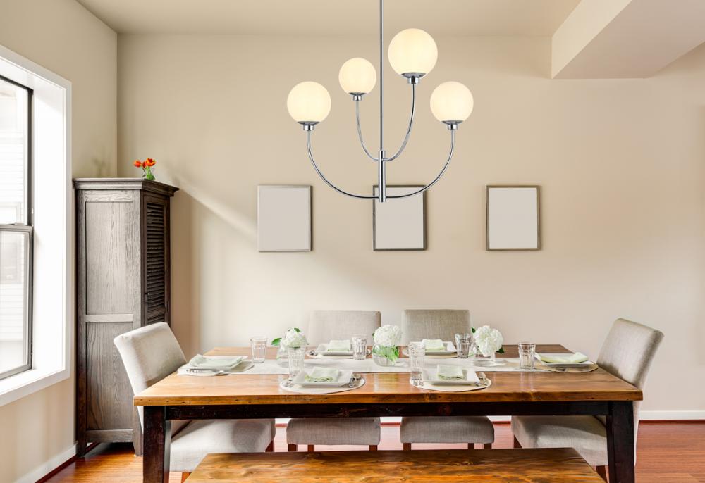 Lamp features a diameter of 20 inches, a height of 25 inches, and requires 6 candelabra bulbs
