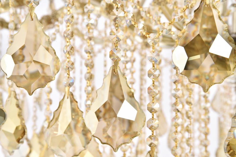 Hundreds of golden-teak royal-cut crystal strands arch and dangle