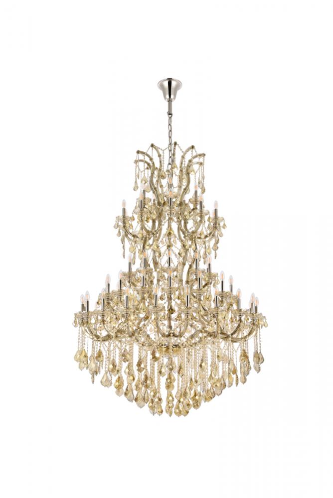 Lamp features a diameter of 54 inches, a height of 72 inches, and requires 61 candelabra bulbs