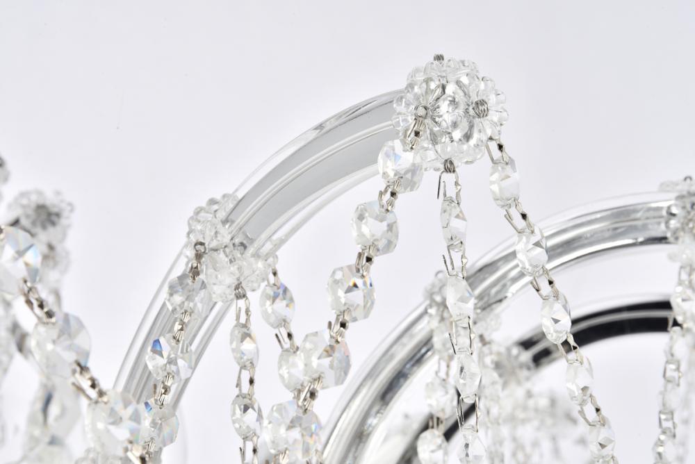 A heavenly high point to your home, Maria Theresa collection flush mount fixtures are ablaze with resplendent crystals. Copious strands of sparkling clear crystals dangle from elaborate tiers of glass-coated steel arms. An imperial favorite for the stairwell, dining room, or living room.