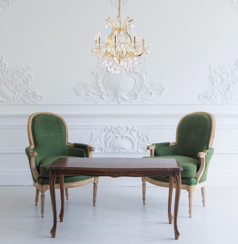 A heavenly high point to your home, Maria Theresa collection pendant lamps are ablaze with hundreds of resplendent crystals. Copious strands of sparkling clear or golden-teak crystals dangle from elaborate tiers of glass-coated steel arms in your choice of a chrome, gold, golden-teak, white, or black finish. An imperial favorite for the stairwell, dining room, or living room.
