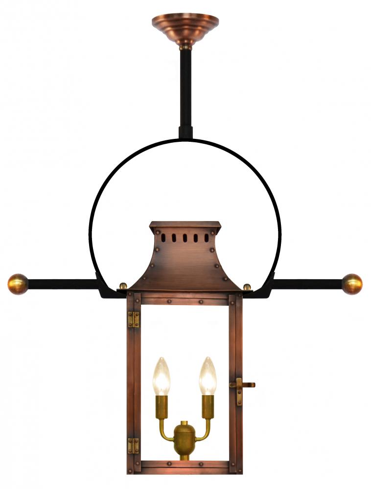 Size 21 Electric Copper Lantern, 2 candelabra base sockets, with Classic Yoke, Ladder Rest