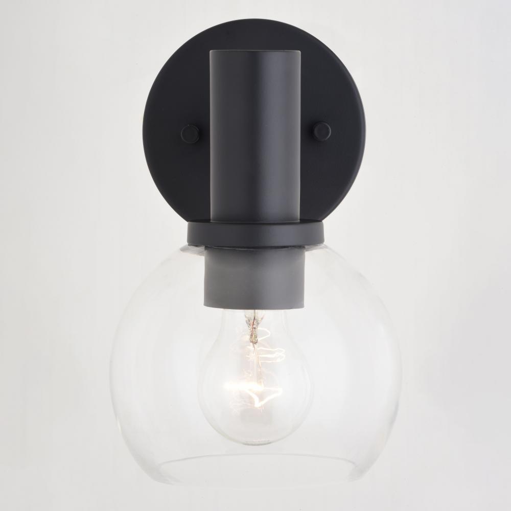 The Marshall collection is transitional style with a contemporary flair at a competitive price. A stately arm finished in matte black supports a clear glass globe for the perfect balance of dark versus light. This wall sconce is ideal for bathrooms, hallways, bedrooms, kitchens or any other living area where a little extra style is desired.