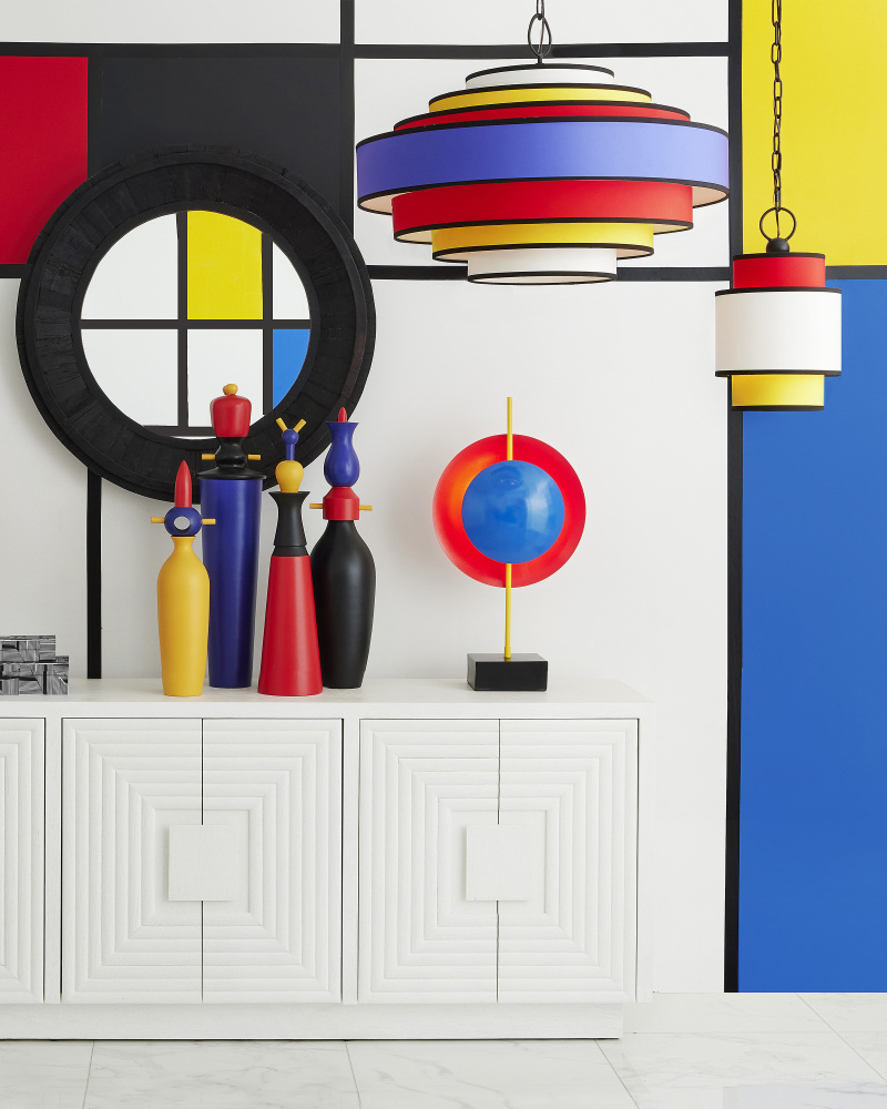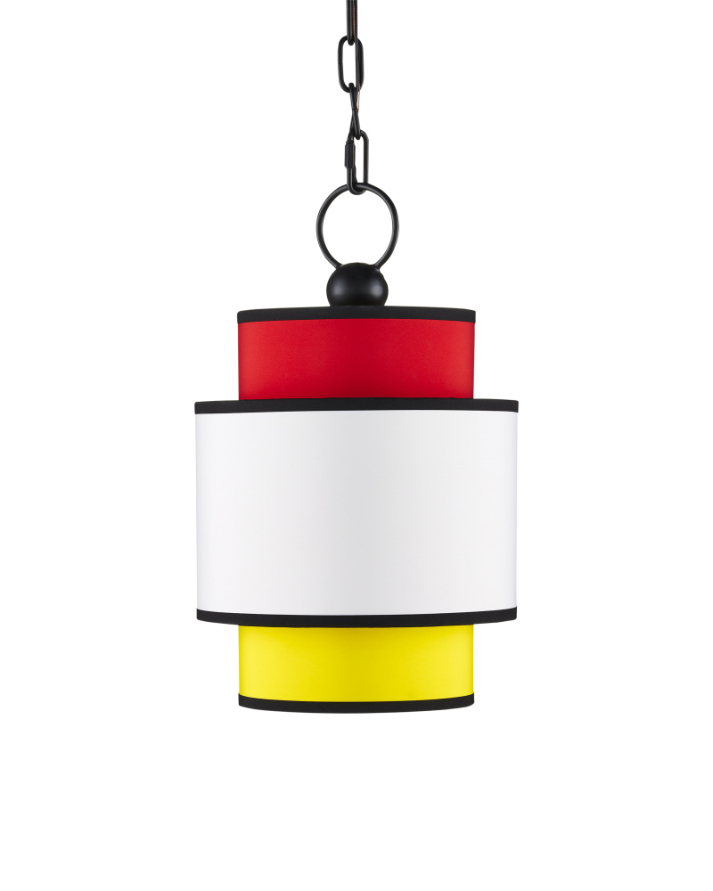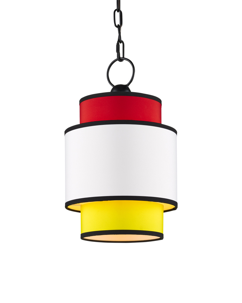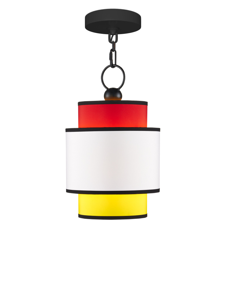 With its bright primary colors in red, yellow, and white, the Mathias Pendant is a nod to the continuing popularity of Mondrian-inspired design elements. The multi-colored pendant has fabric shades that are trimmed in black to match the metal frame in a satin black finish. The black lines bring a sophistication to this design that echoes one of the most important movements in modern art. Adjustable from 21" to 91" with use of included chain/rod kit/cable. If your space calls for a longer drop, additional chain/rods/cable is available for purchase.