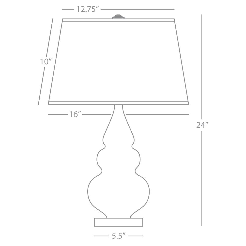 Our Triple Gourd collection features a simple but gracefully curving silhouette. Available in a wide array of vibrant colors and several different base finishes. - Ash Glazed Ceramic with Lucite Base Small Triple Gourd Accent Lamp with Pearl Dupioni Fabric Shade
