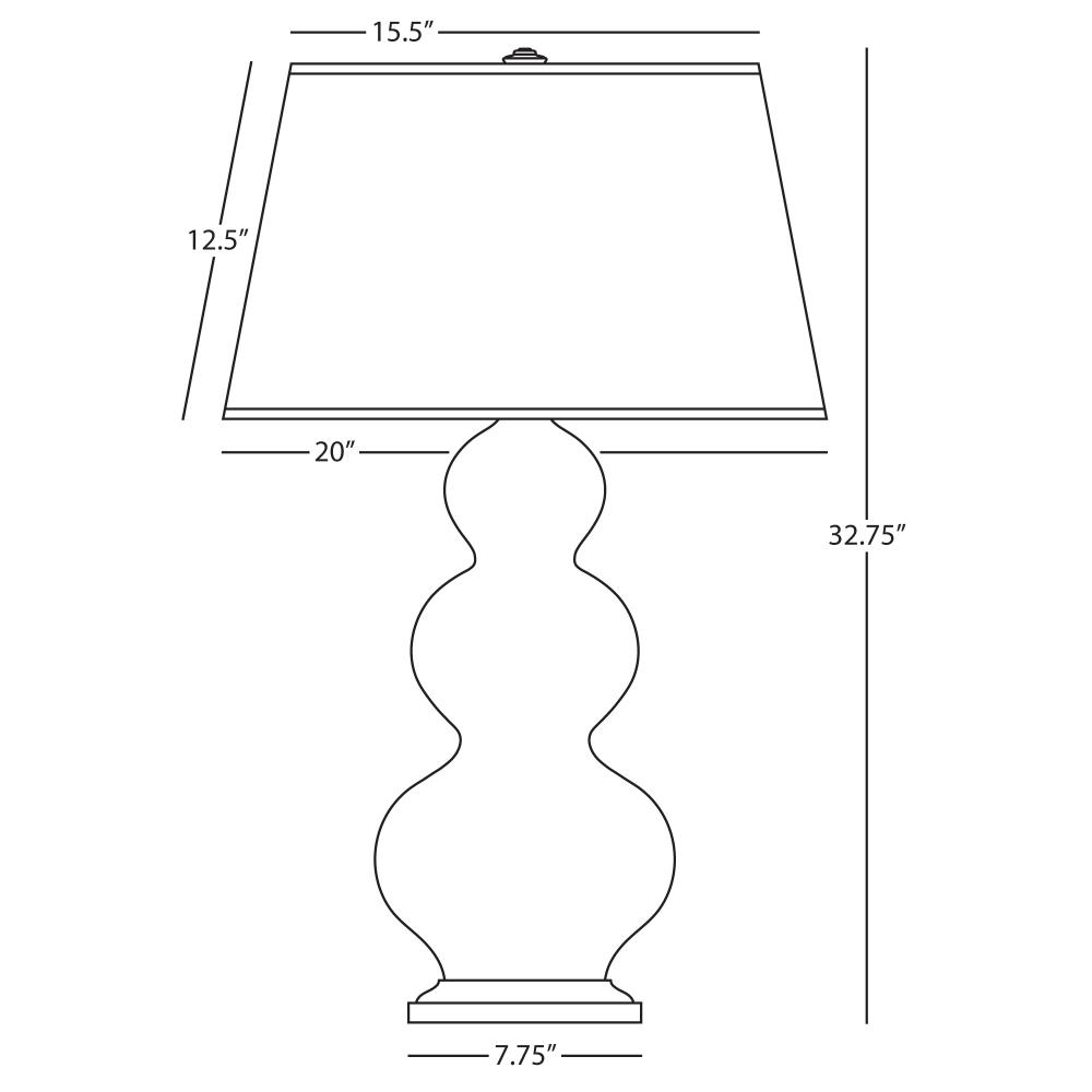 Our Triple Gourd collection features a simple but gracefully curving silhouette. Available in a wide array of vibrant colors and several different base finishes. - Ash Glazed Ceramic with Deep Patina Bronze Finished Accents Triple Gourd Table Lamp with Pearl Dupioni Fabric Shade