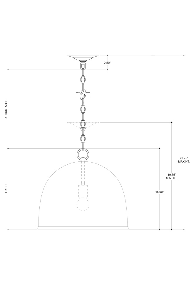 Our Matute Pendant is an edgy composition made of iron with a surprising mix of finishes. Though the predominant finish on the dome-shaped shade is pewter, we dressed the gray pendant up just a bit by adding a ring in a brass finish around the bottom edge. Adjustable from 22" to 89" with use of included chain/rod kit/cable. If your space calls for a longer drop, additional chain/rods/cable is available for purchase.