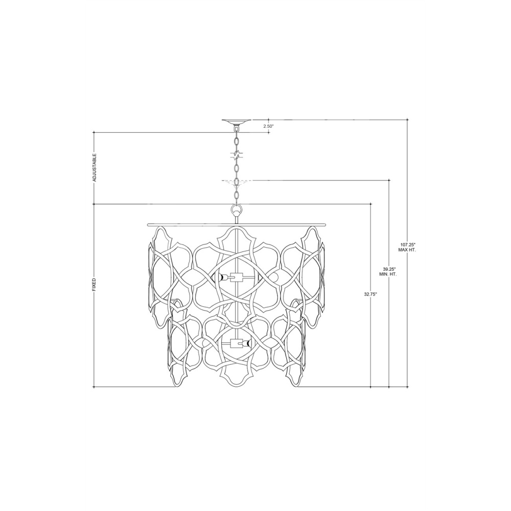 The Mauresque Medium Bronze & Gold Chandelier is made of sculpted bands of wrought iron in a lovely contemporized floral pattern that drips downward. The shade of the gold and black chandelier has contrasting surfaces in bronze gold and contemporary gold leaf finishes, which means the outside reads as black while the inside is bright gold. The organic shape of this fixture is created by metal panels that are laser cut from sheet metal, which takes great concentration to achieve. Adjustable from 39.25" to 107.25" with use of included chain/rod kit/cable. If your space calls for a longer drop, additional chain/rods/cable is available for purchase.