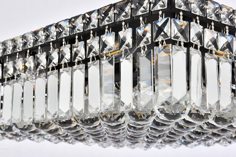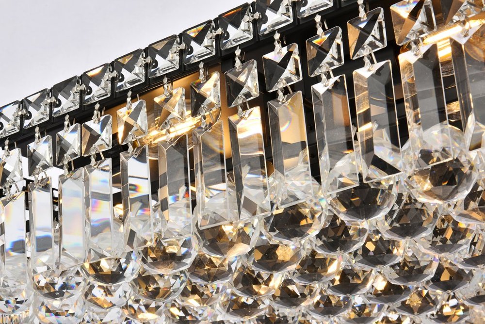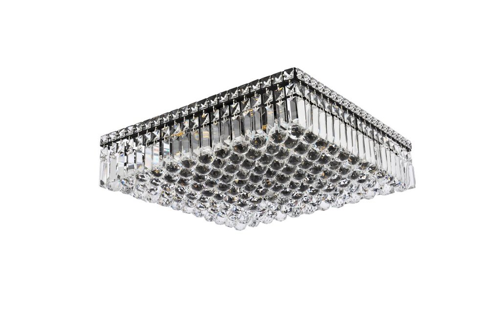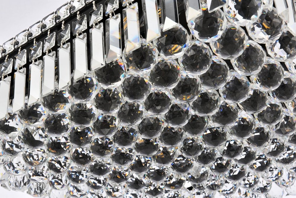A riot of shapes and textures, Maxime collection flush mounts sparkle in a mosaic of crystal tiles. Square and rectangular precision-cut crystals form the flamboyant exterior while faceted crystal balls create a bubbled effect for light to shine through beneath. Available in a black or chrome finish with clear crystals, these lamps are a luxurious addition to a kitchen, stairwell, foyer, or living room.